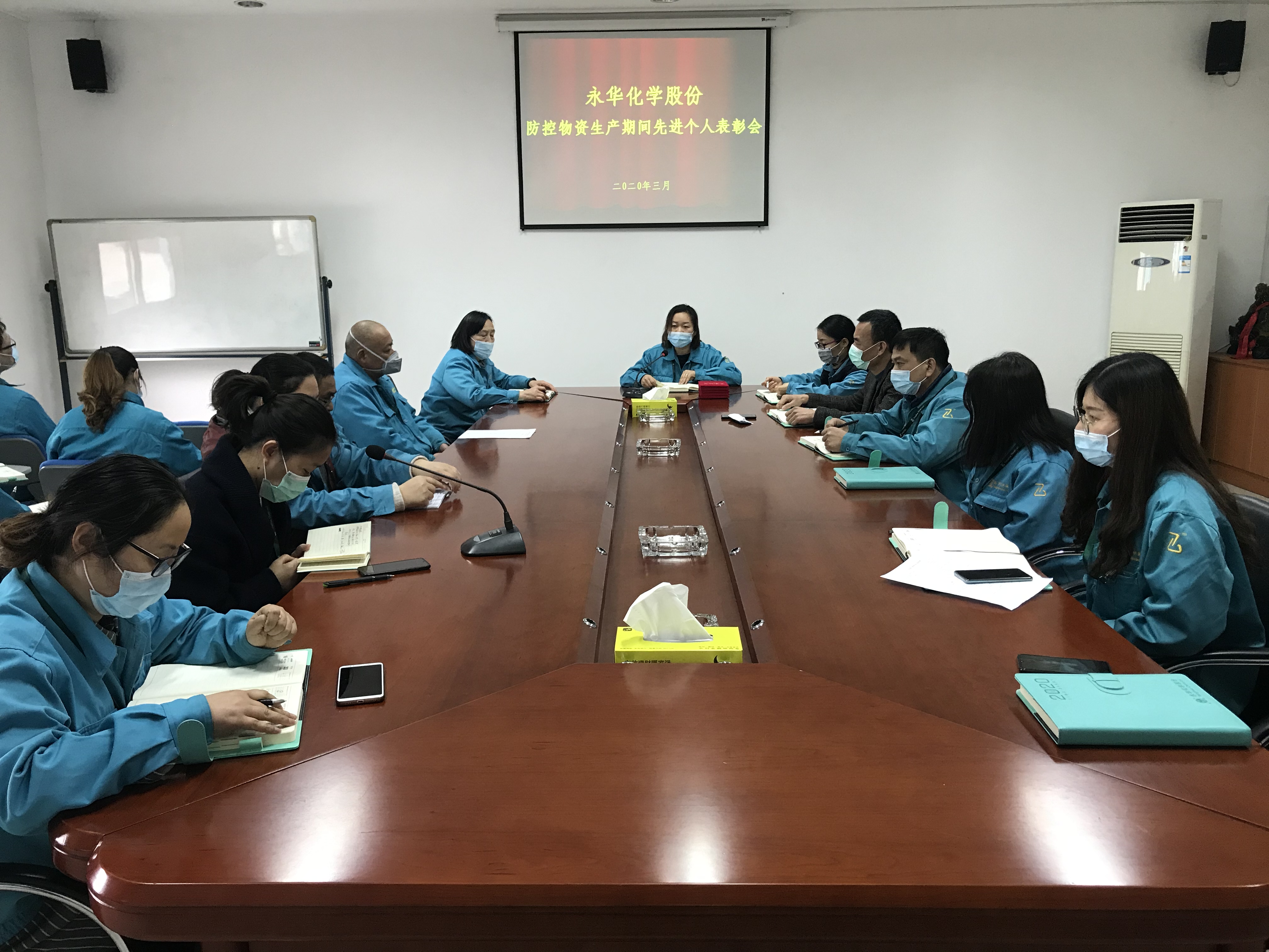 2020年3月13日,我公司召開防控物資生產(chǎn)期間表現(xiàn)突出的“先進個人”表彰大會。供應鏈副總張麗萍、銷售副總周軍、工廠各部門副職及以上干部出席會議,會議由工會主席劉敏花主持。
