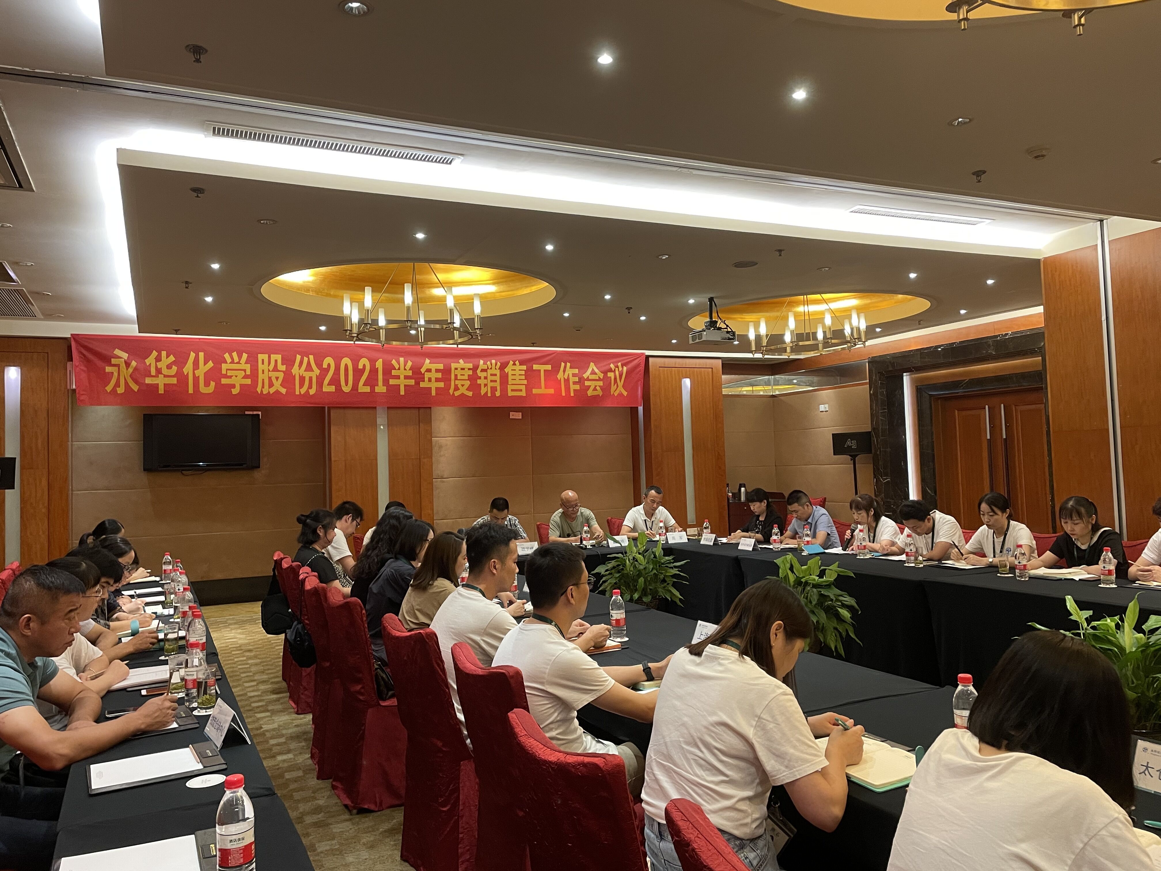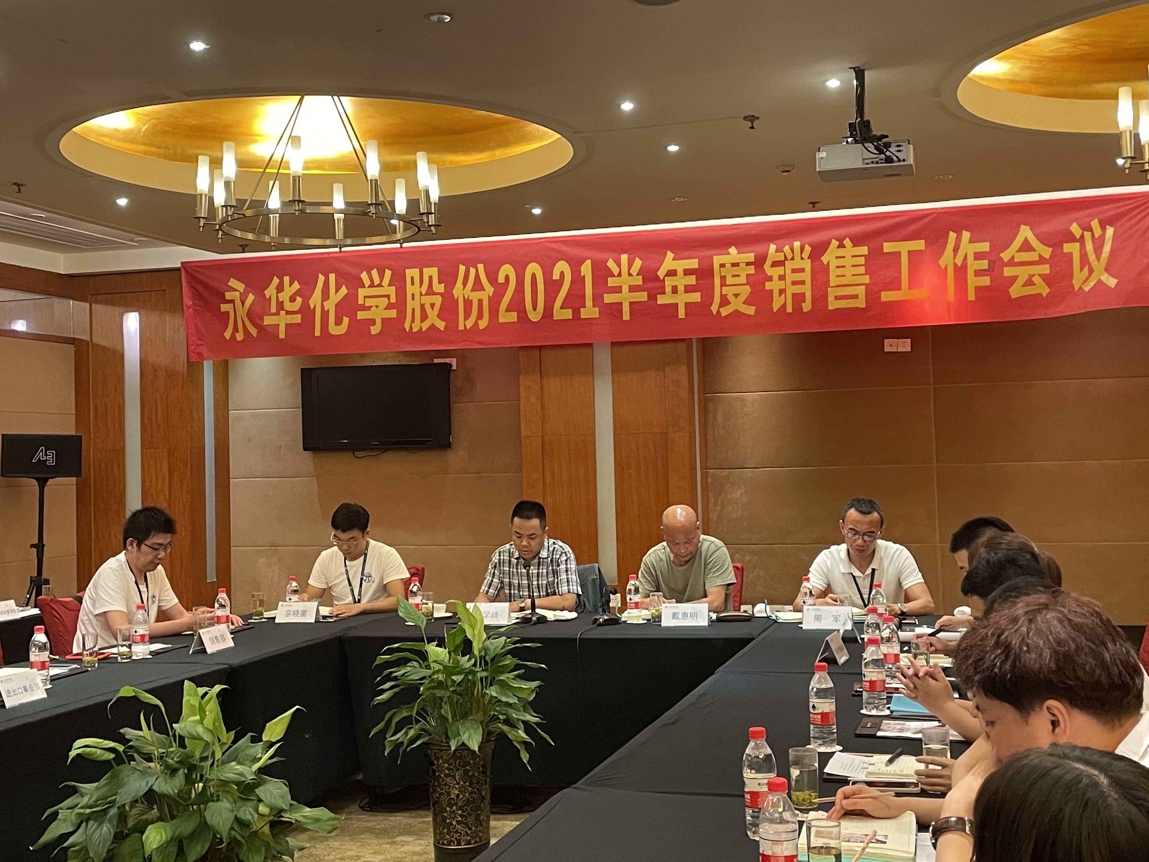 7月24日,我司2021半年度銷售工作會議在裕坤麗呈華廷酒店召開,公司總經理顧學峰,常務副總戴惠明,銷售副總周軍,總經理助理宗曉雷,各銷售部員工及部分工廠領導參會,會議由陳書平主持召開。