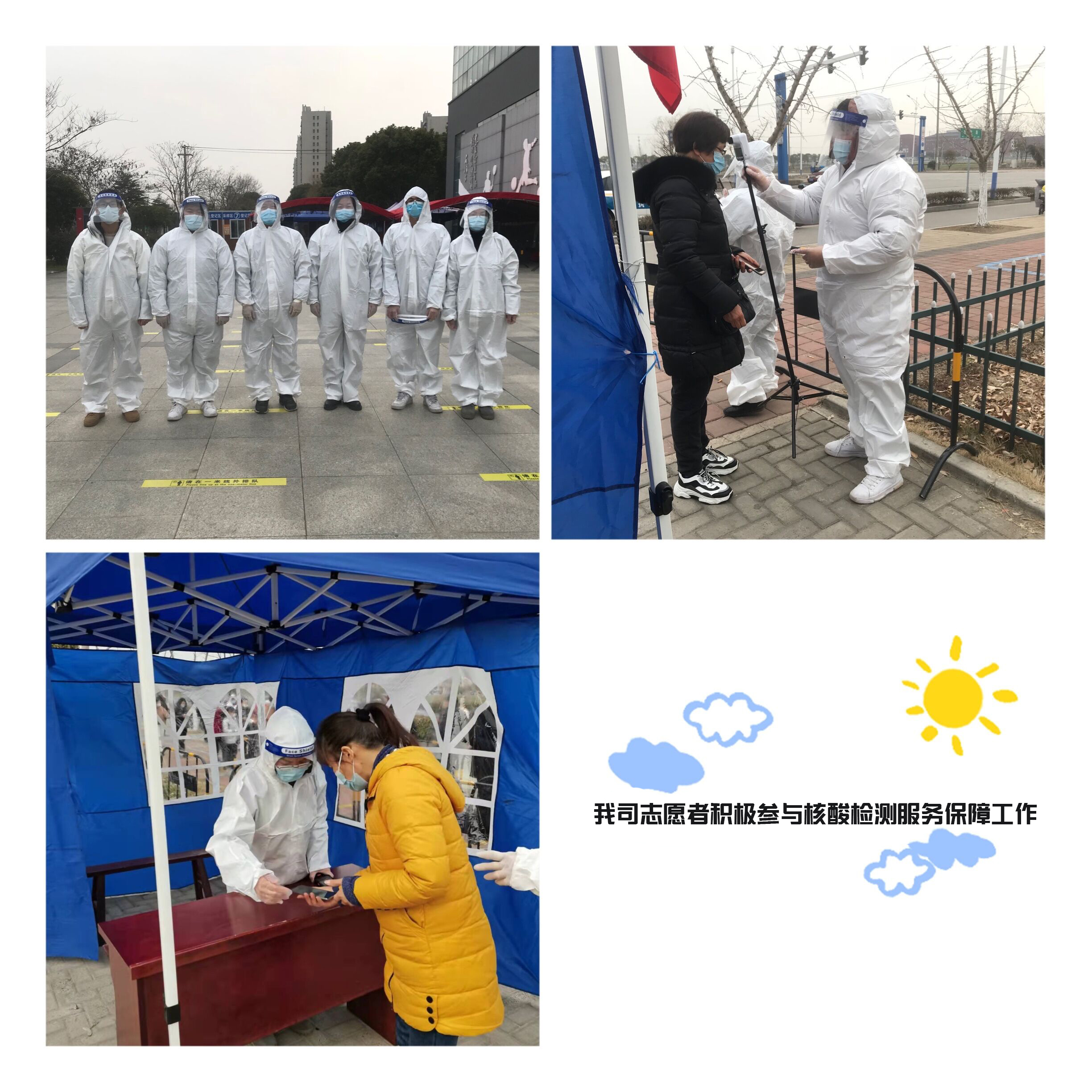 在支塘鎮(zhèn)文體公園、徐政村、何市社區(qū)、何北村、項橋村等5個檢測點,我司十多名志愿者積極配合工作人員,迅速熟悉工作流程,在核酸檢測采樣區(qū)域維護現(xiàn)場秩序,測量體溫,登記信息,引導大家有序排隊,耐心解答群眾提出的各種問題,忙前忙后穿梭在隊伍中,盡己所能,幫助每一位可幫到的人,履行著志愿服務的責任與擔當。