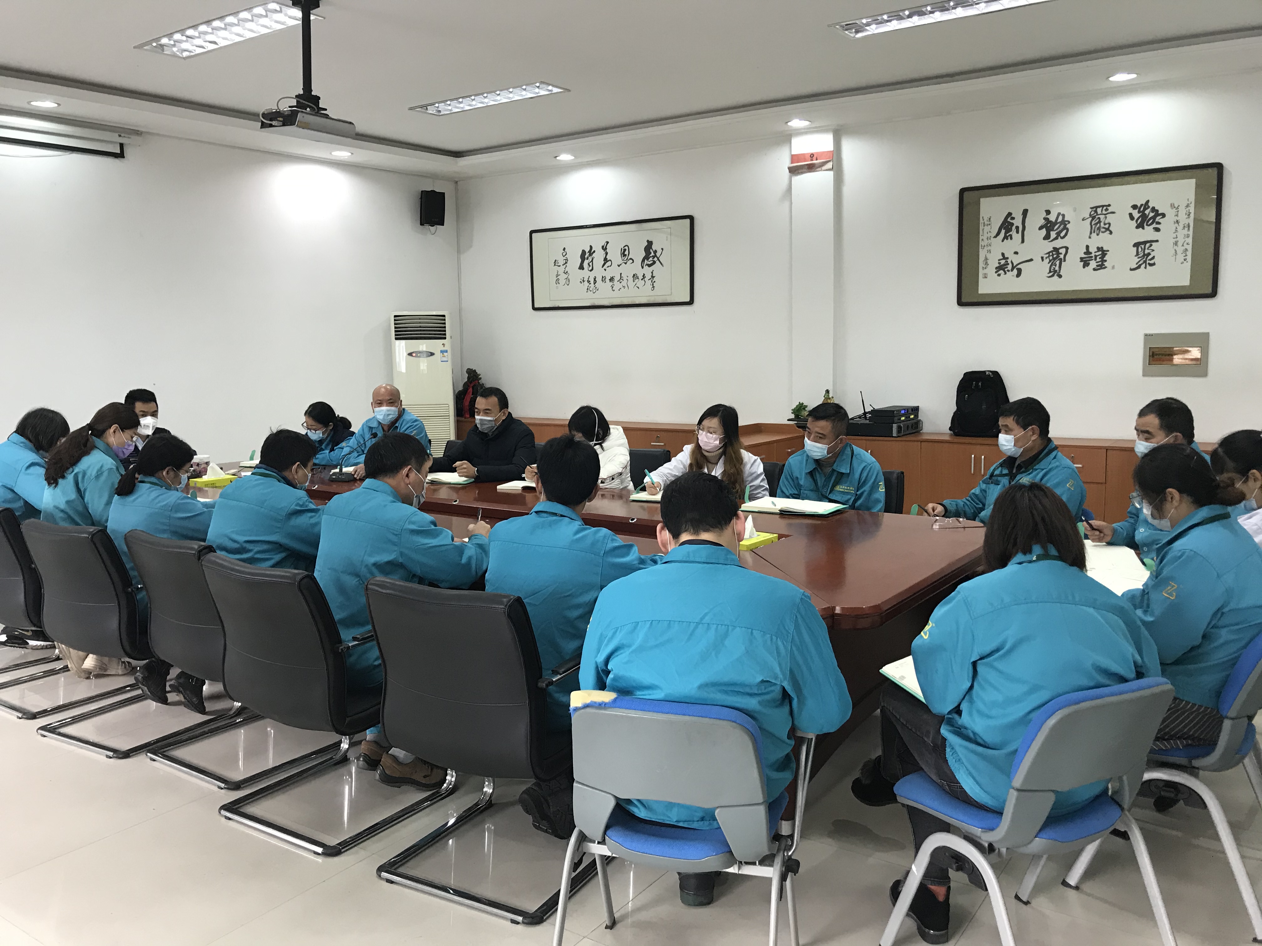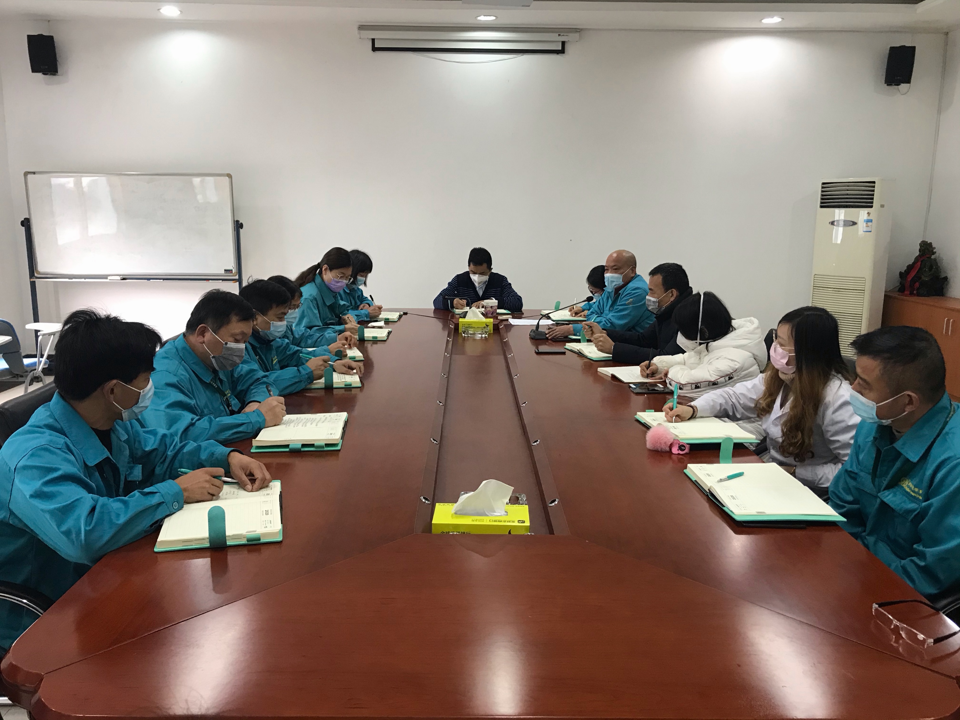 我公司工廠全體員工已于2月10日正式全面復工。鑒于當前新型冠狀病毒感染肺炎的疫情形勢依舊非常嚴峻,2月11日上午,公司總經(jīng)理、副總經(jīng)理及各部門經(jīng)理召開了復工工作會議,會議由總經(jīng)理顧學峰主持。