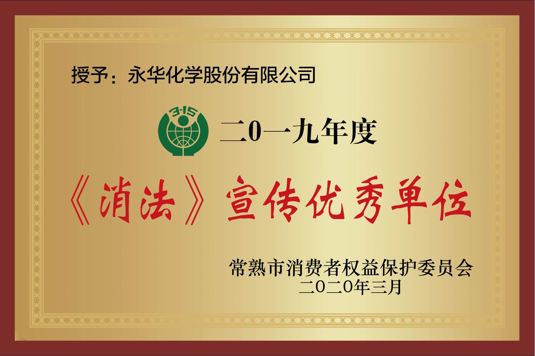 此外,我公司也被評為2019年度《消法》宣傳優(yōu)秀單位。